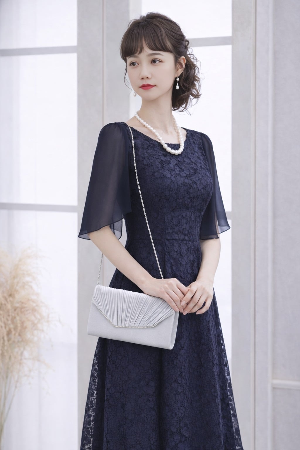 フロントに施した細やかなプリーツとさりげないビジューラインが、パーティードレスやお呼ばれドレス、結婚式お呼ばれの装いに上品なアクセントを添えます。