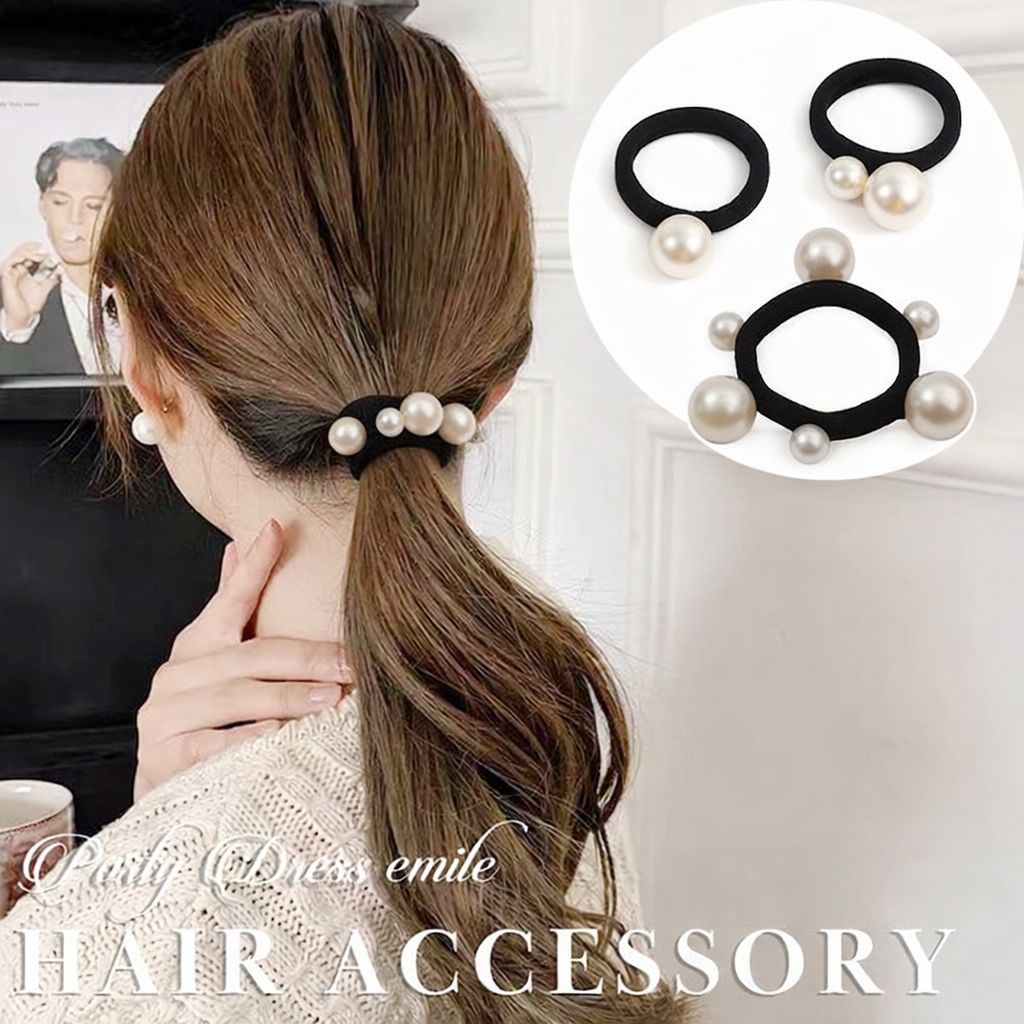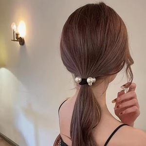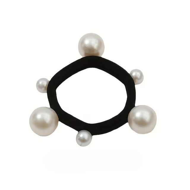 パール調のチャームが付いたこのヘアゴムは、結ぶだけで簡単におしゃれなヘアアレンジが可能です。