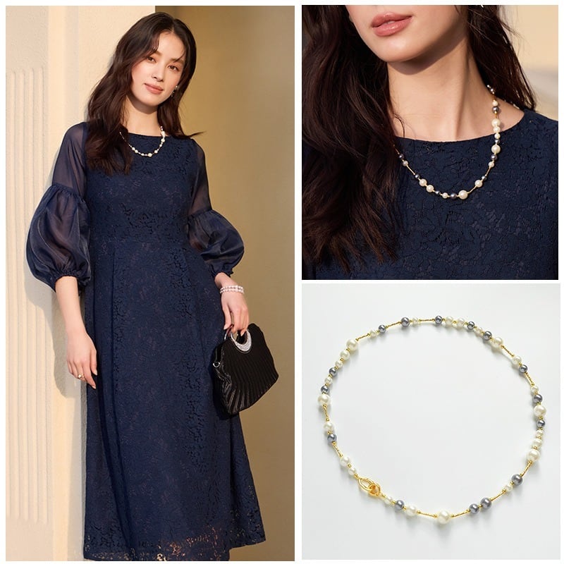 大小のパールをリズミカルにあしらうことで、シンプルながら単調にならず、コーディネートのアクセントにもぴったり。