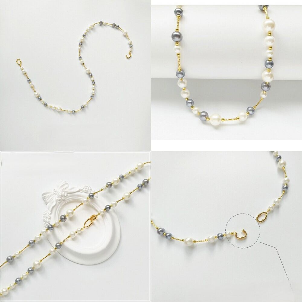 ホワイトとグレーのパールをバランスよく組み合わせ、やわらかな華やかさの中に落ち着いた大人の雰囲気を添えてくれるデザインに仕上げました。