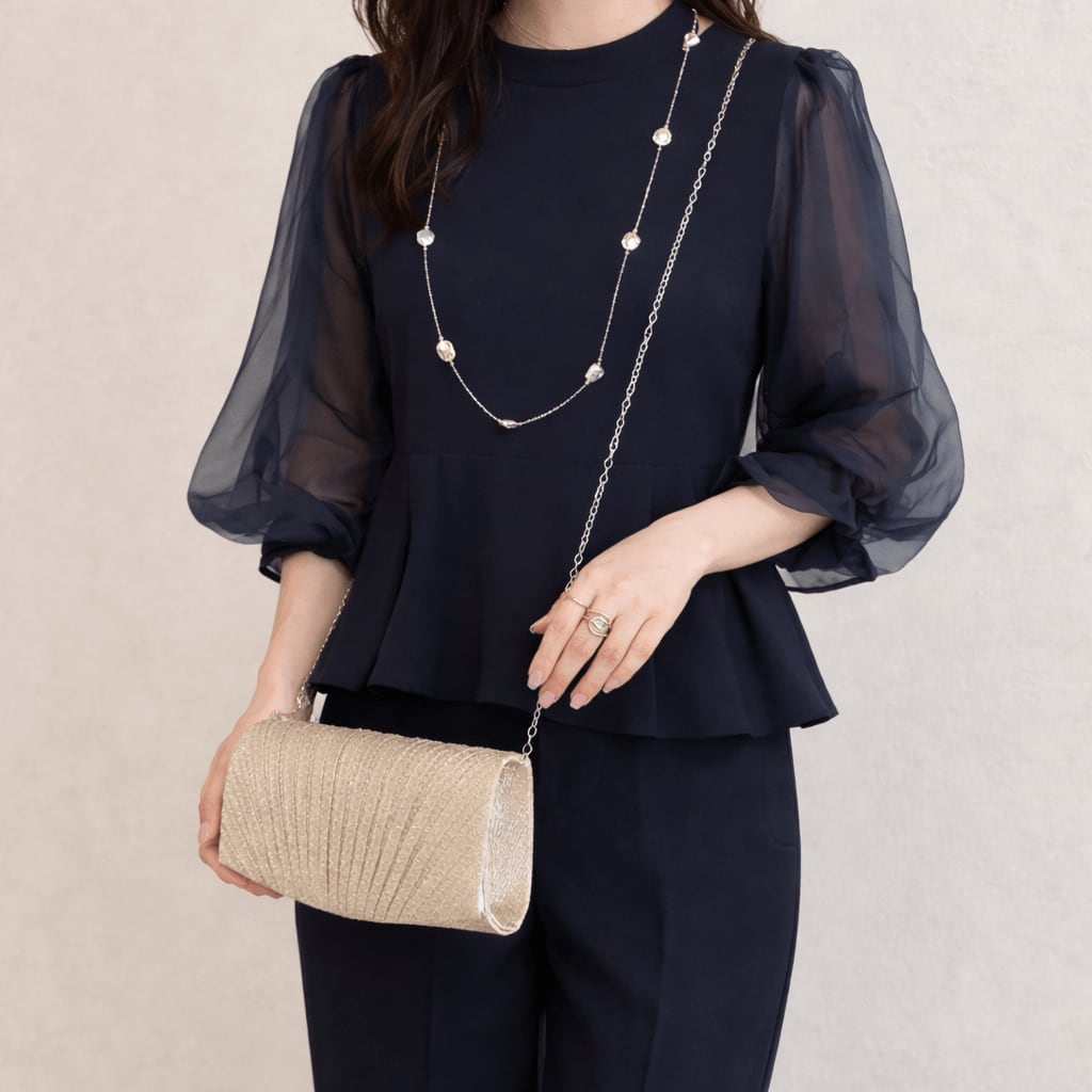 このクラッチバッグは、フォーマルな場面はもちろん、カジュアルなコーディネートにもマッチし、エレガントで優雅な印象を与えます。結婚式や披露宴、二次会、お食事会、謝恩会など、様々なシーンで大活躍する一品です。上品さと実用性を兼ね備えたデザインで、どんなスタイルにも華やかさをプラスします。