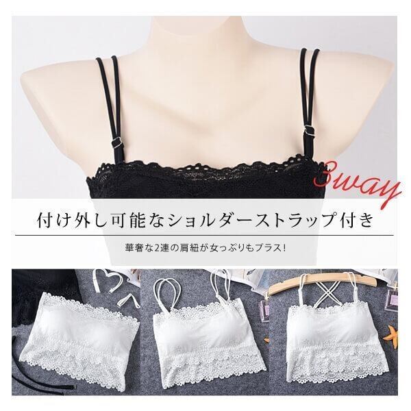 ●全2色!ショルダーストラップ付き カップ入り刺繍レースハーフトップ