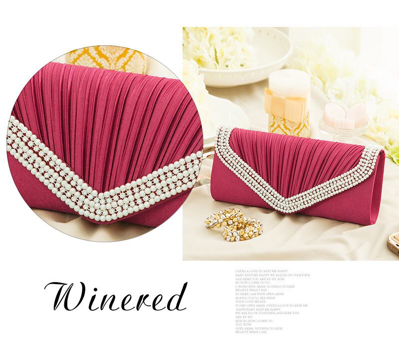 ■プリーツサテンの光沢感が上品なパーティーバッグ。ラインストーン&パールで華やか♪