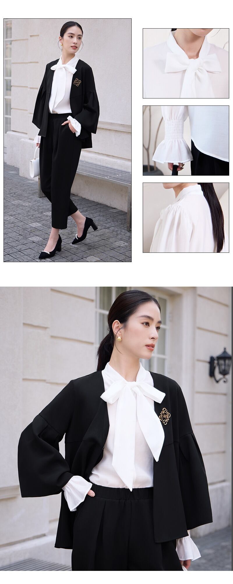 ご来店誠にありがとう御座います。 当店公式LINE【emile】にて割引クーポンをお配りしております。 LINE 追加特典 ・LINE追加で初回割引クーポン ・LINE限定クーポン ・新商品 SALE先行告知 お問い合わせ、ご質問はこちらから 【公式LINE】emile https://line.me/R/ti/p/%40vcv8428j ID:【@vcv8428j】 ※店舗担当者とトークで気軽にお問い合わせ頂けます。 ---------------------------------------------------- ご覧いただきましてありがとうございます。 「パーティードレス通販emile(エミール)」でございます。 結婚式、パーティー、二次会、学校行事、デート、記念日、『特別な一日に。』 どんな場面のお洋服でも、こだわりの一着がみつかります! お手頃プライスと種類の多さで人気急上昇中! emileであなただけの特別な一着を見つけて下さい。 お呼ばれや特別な日のためのパーティードレスをメインに、アクセサリーやバッグ、シューズなど取り扱っております。 全品送料無料!大きいサイズも豊富に取りそろえております。 1点1点専用アイロンがけを行ってから出荷致します。心を込めて出荷させて頂きます。 emileではサイズやカラーが合わなかった場合でも、交換対応させて頂きますので、 安心してネットショッピングを楽しんで頂けます。別の商品でも交換が可能で御座います。 センシュアルな魅力を引き出すブラウスで、女性らしさを際立たせます。 オケージョンシーンでも上品なアクセントになるキャンディスリーブデザイン。 肩口のギャザーが柔らかな印象を与え、より女性らしい雰囲気を演出します。 華やかなボウタイブラウスはどんなボトムスにも合わせやすく、オフィスカジュアルスタイルにもぴったり。 ゆったりシルエットで気になる部分をカバーしつつ、華奢見せも叶えます。 ノーカラージャケットとのコーディネートも相性抜群です。 サイズ M バスト108 肩幅37 袖丈65 袖口44 着丈72 L バスト112 肩幅38 袖丈66 袖口45 着丈73 XL バスト116 肩幅39 袖丈67 袖口46 着丈74 XXL バスト120 肩幅40 袖丈68 袖口47 着丈75 モデル着用サイズ Mサイズ 身長172cm 体重52kg バスト83cm ウエスト64cm ヒップ88cm 裏地 なし 透け感 あり 生地の厚さ 普通 伸縮性 なし 素材 ポリエステル100% カラー ブラック ホワイト アッシュグレー