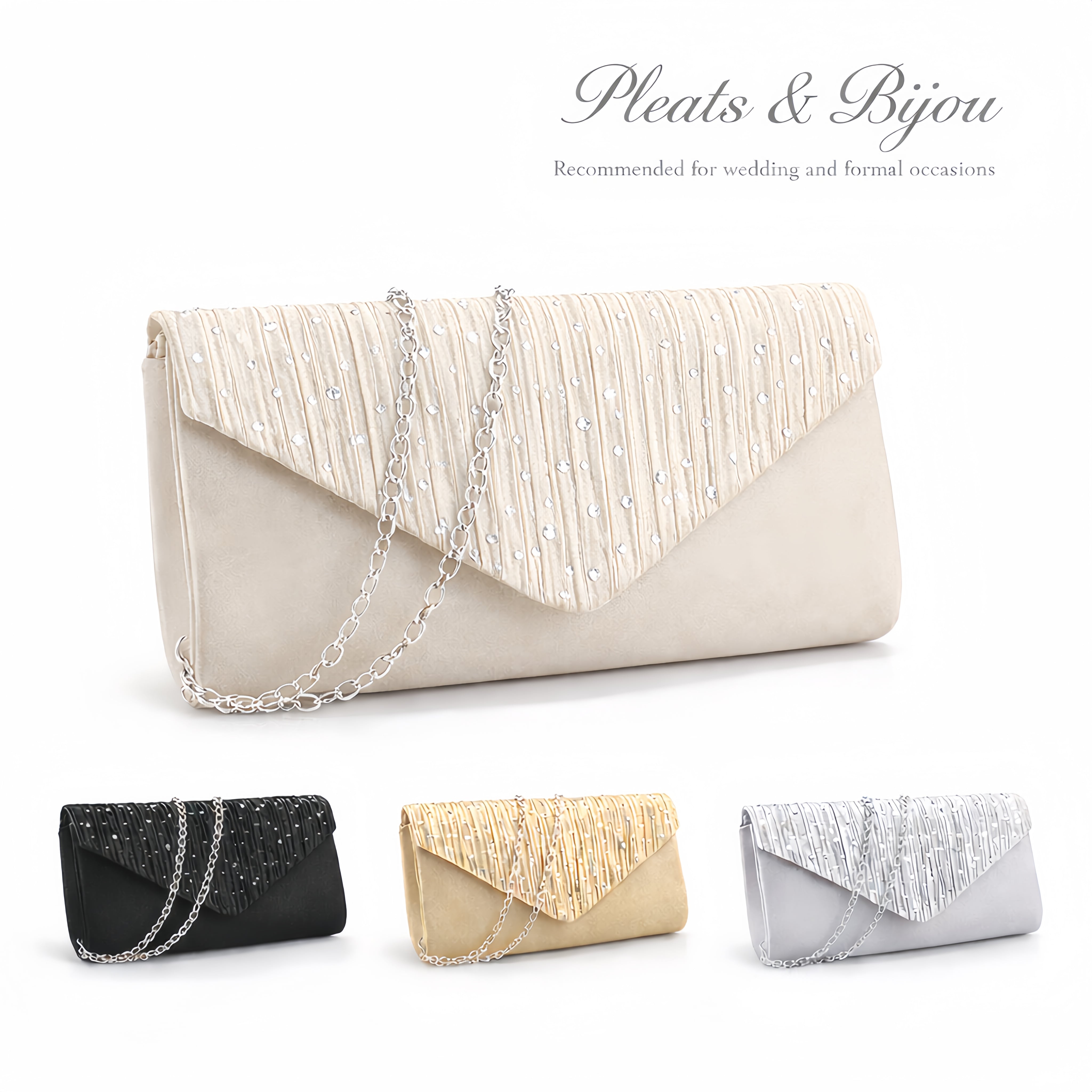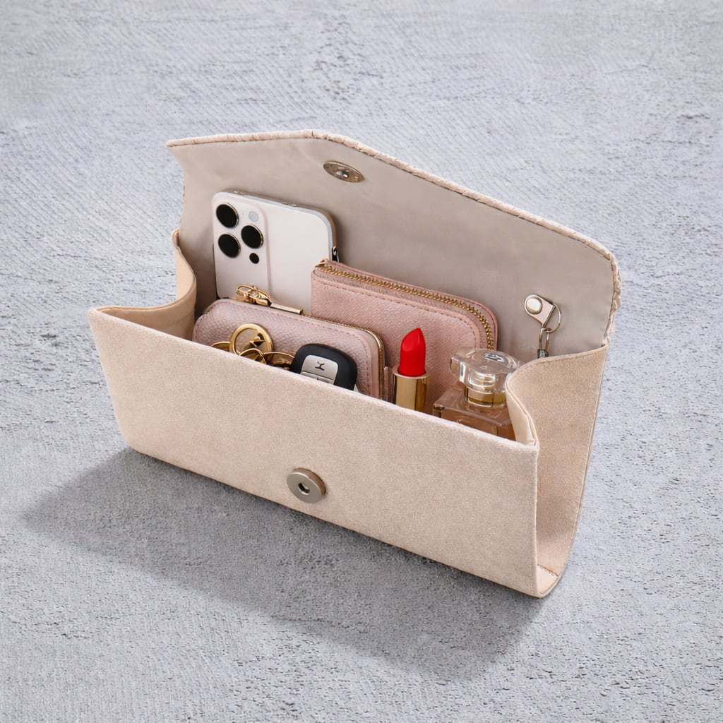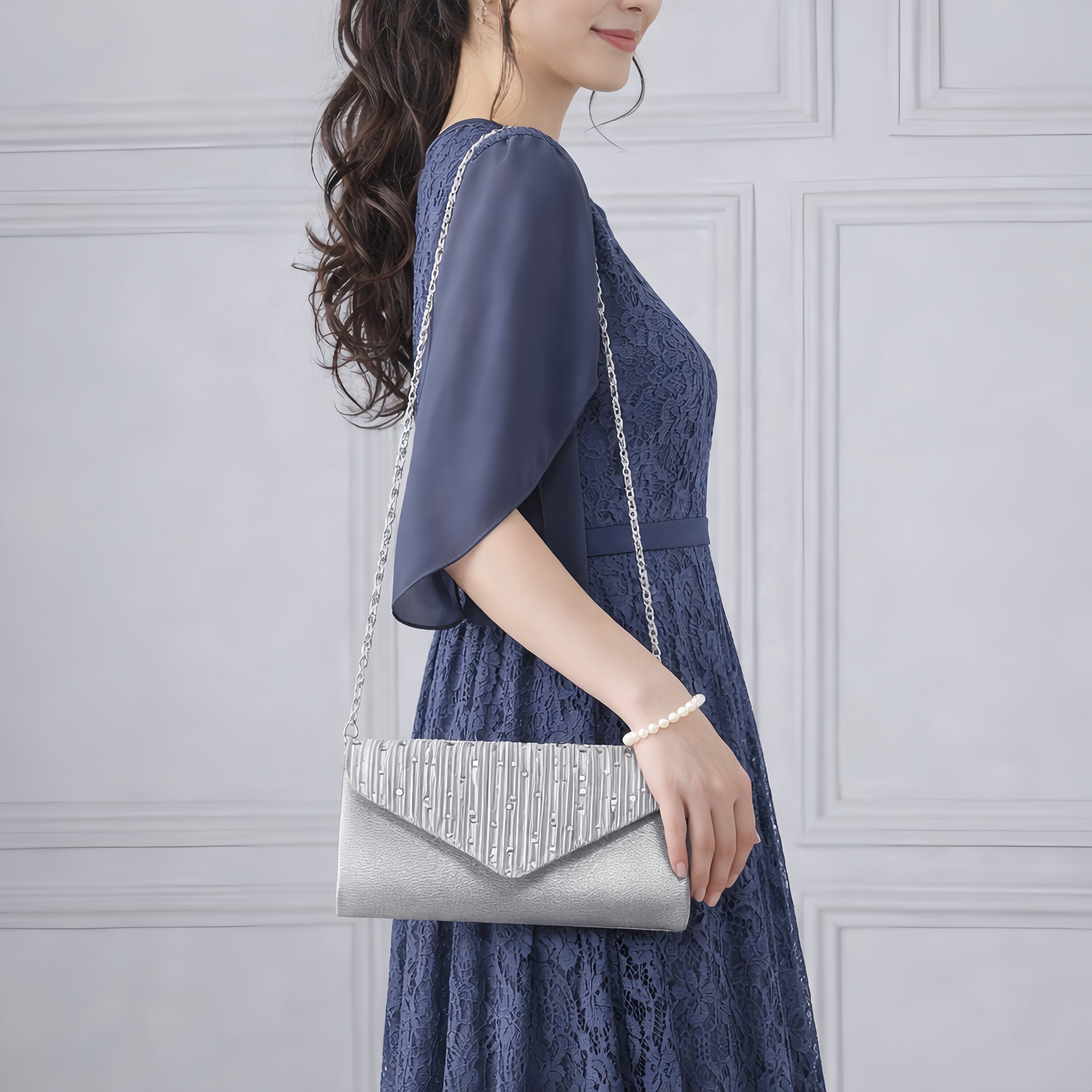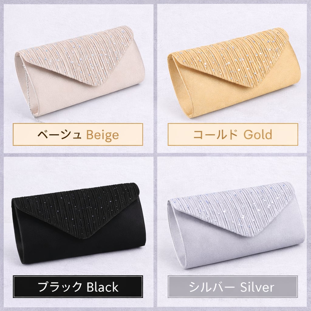 ご祝儀袋、ハンカチ、スマホなどをエレガントに収納するサテン生地パーティーバッグ