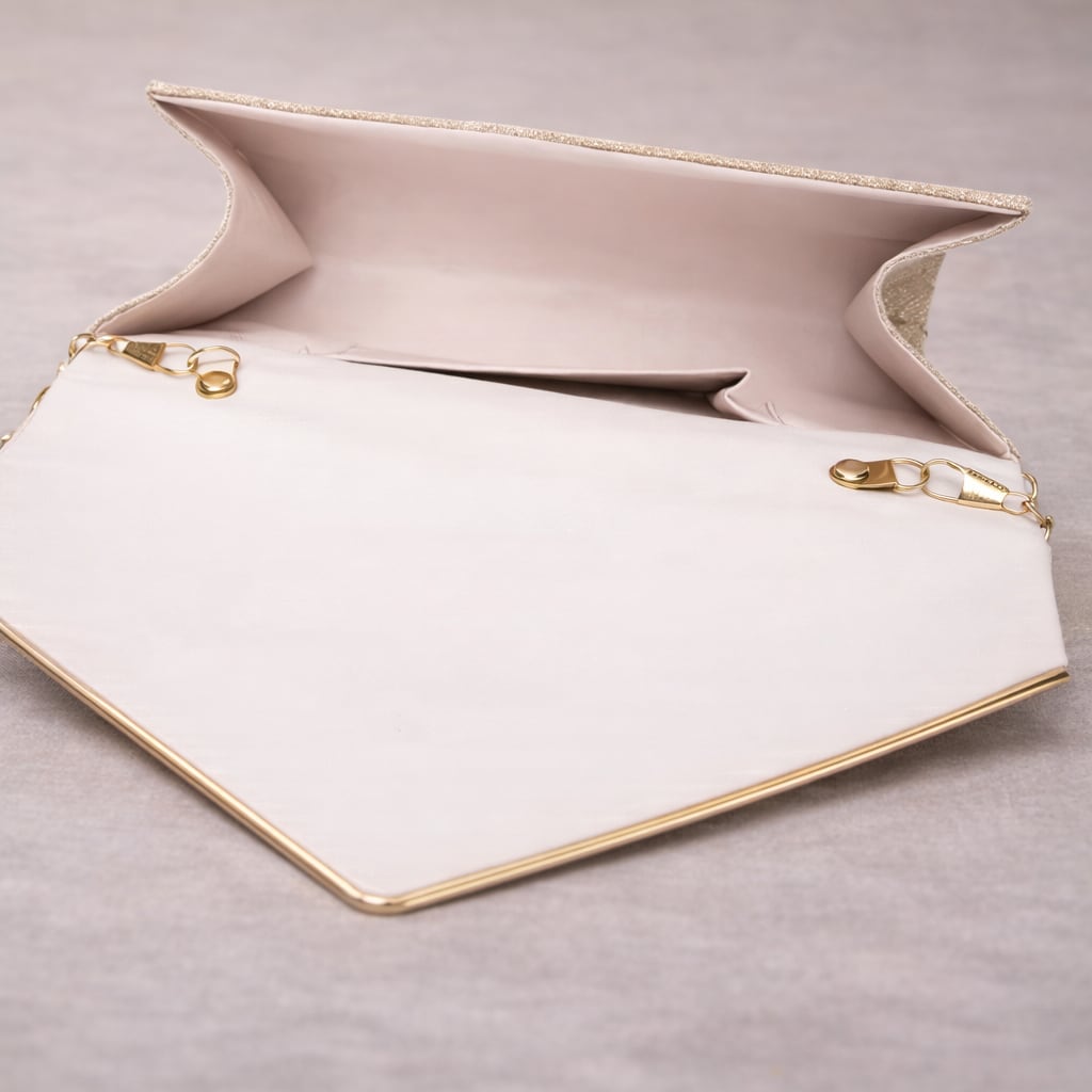 色のバリエーション: シルバー、ベージュ、ブラックの3色。どの色も華やかで、どんなドレスとも相性が良い。