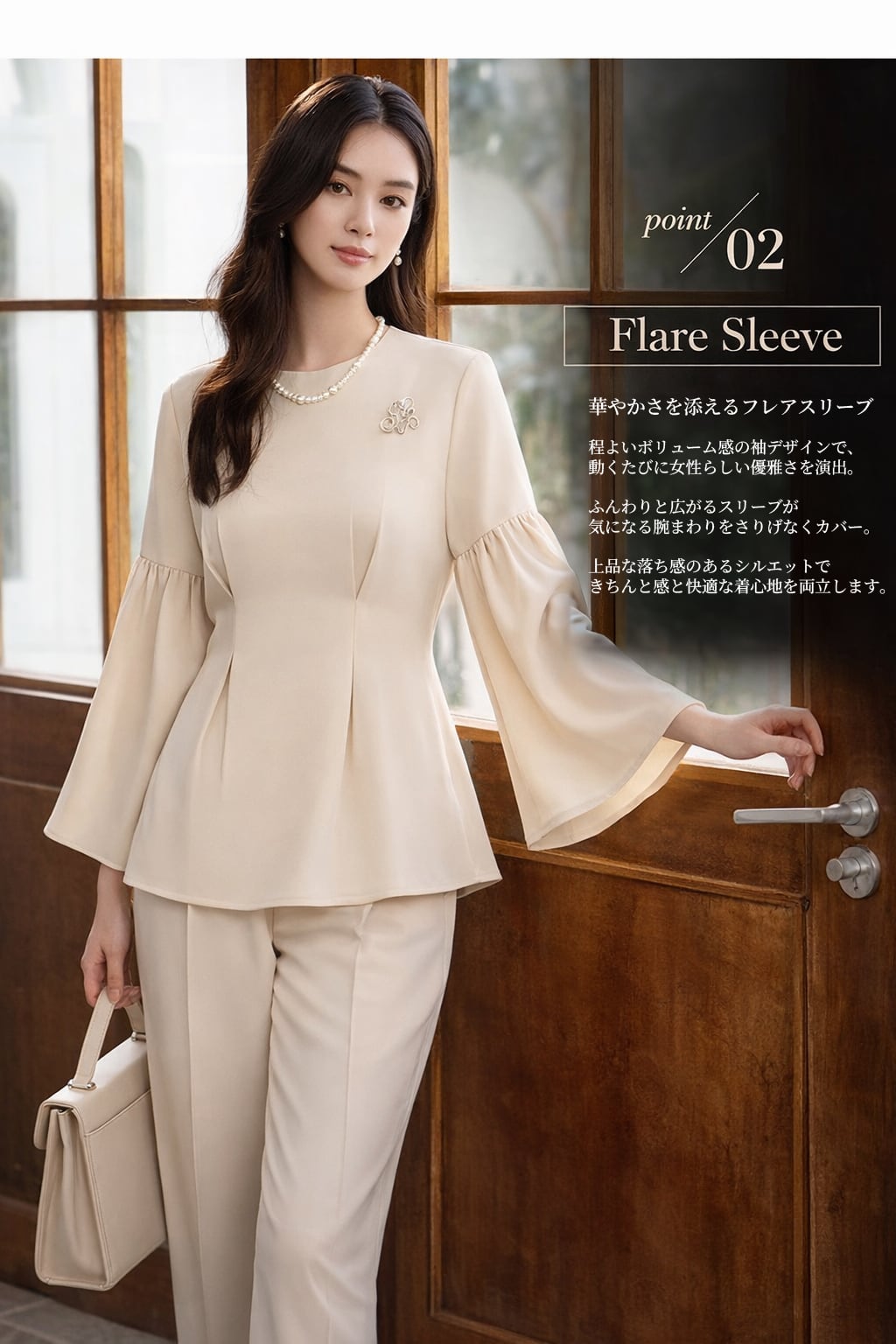 袖には程よいボリュームのフレアスリーブを採用。