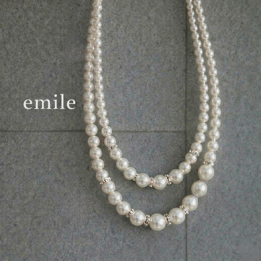 交換無料 即日配送 送料無料 2連 パールネックレス パール ラインストーン ネックレス フォーマル 結婚式 披露宴 二次会 食事会 記念日 パーティ シルバーアクセサリー emile0329