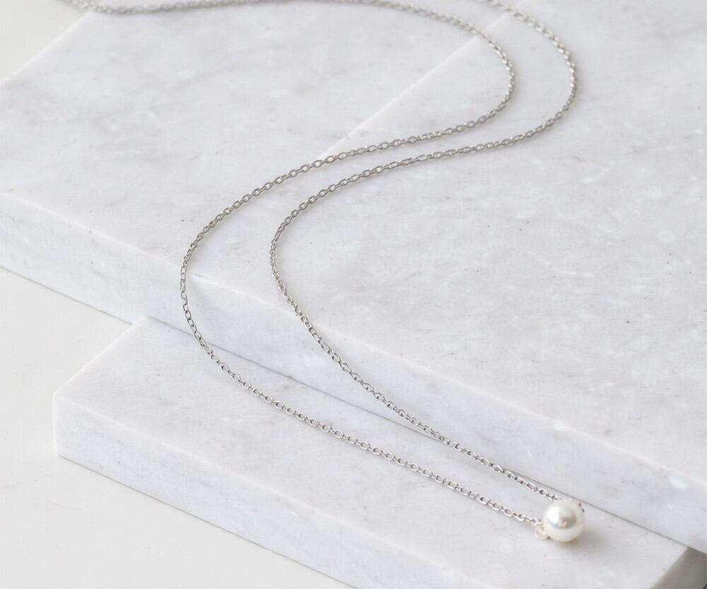 上品な艶めきを放つ一粒パールが、首元をさりげなく美しく見せてくれるネックレスです。