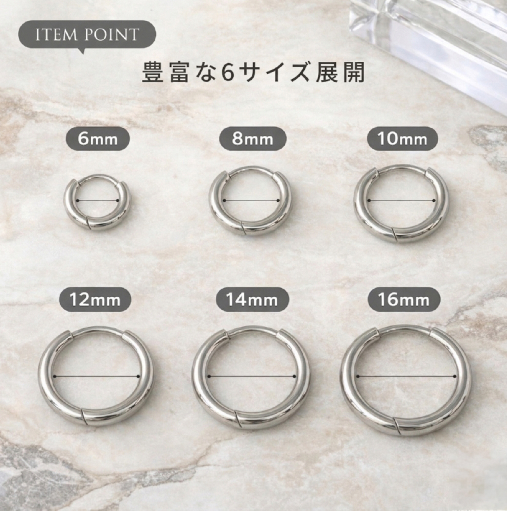 つけっぱなしでも快適に使いやすい、シンプルで上品なフープピアス。