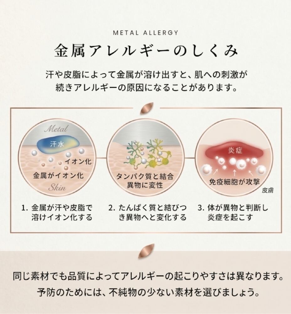・金属アレルギー対応素材で毎日に使いやすい