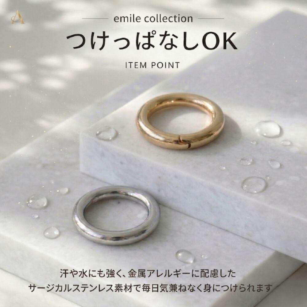 ・つけっぱなししやすいシンプルフープデザイン